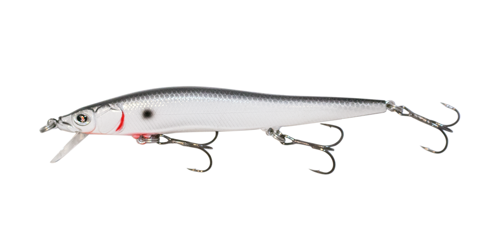 The BDJ 95 Series dives 2-4’ and the BDJ 115 Series dives 3-5’.  Both baits are neutrally buoyant Jerk Baits designed to fish with a twitch, pause, twitch imitating a dying shad. Features razor sharp Kitana Hooks, raised gill plates and scales, and perfect paint patterns