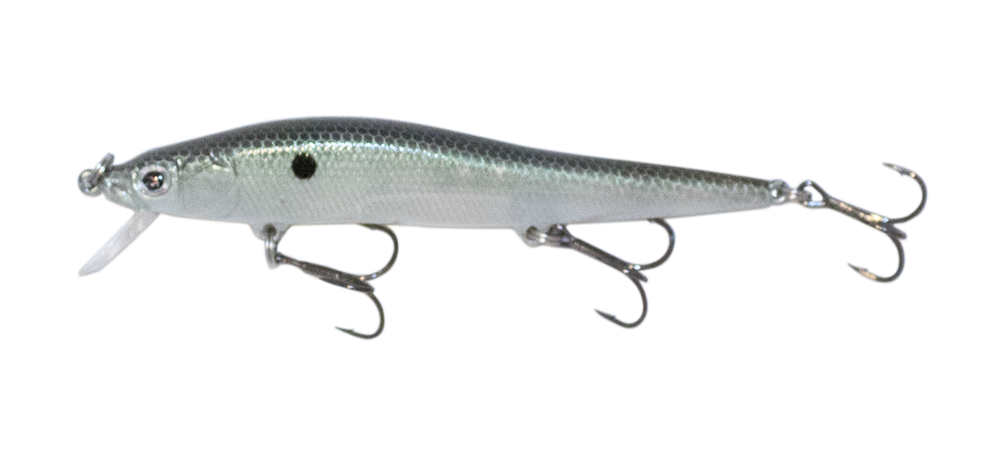 The BDJ 95 Series dives 2-4’ and the BDJ 115 Series dives 3-5’.  Both baits are neutrally buoyant Jerk Baits designed to fish with a twitch, pause, twitch imitating a dying shad. Features razor sharp Kitana Hooks, raised gill plates and scales, and perfect paint patterns