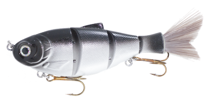 BD Shad Slow Sinking Swimbait is a three-jointed swimbait designed to accurately mimic the different varieties of shad and baitfish, which populate fisheries across the United States. It sinks horizontally, just like a real baitfish does.  Finishes are beautiful, and accurately portray various baitfish found in USA waters. Cast the BD Shad as far as you can, then retrieve either with a straight retrieve, or with jerks and twitches.  The BD Shad will randomly dart to the left or right after being twitched, often eliciting bone jarring strikes. The tails are made out of flexible fiber for tantalizing action. Comes with razor sharp Kitana Hooks.American Shad.