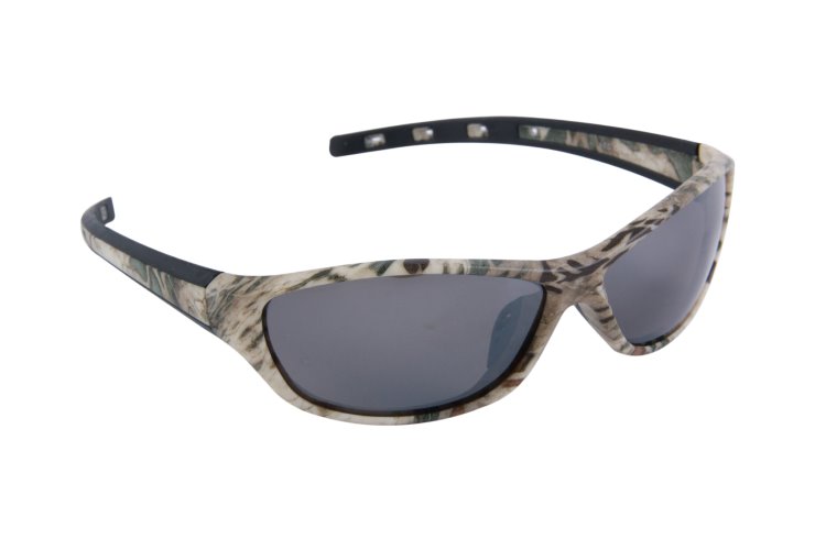 Prym1 MP Ignite style polarized PC frames with PC smoke lens. Frame features rubber ear rests on the temples in black. Pattern is Prym1 Sandstorm, whether in arid environments of Africa or in a duck field in Arkansas, this pattern helps you blend in with nature.
