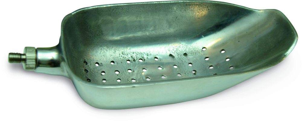 Indestructible metal version of the bait scoops for feeding particles and boilies.