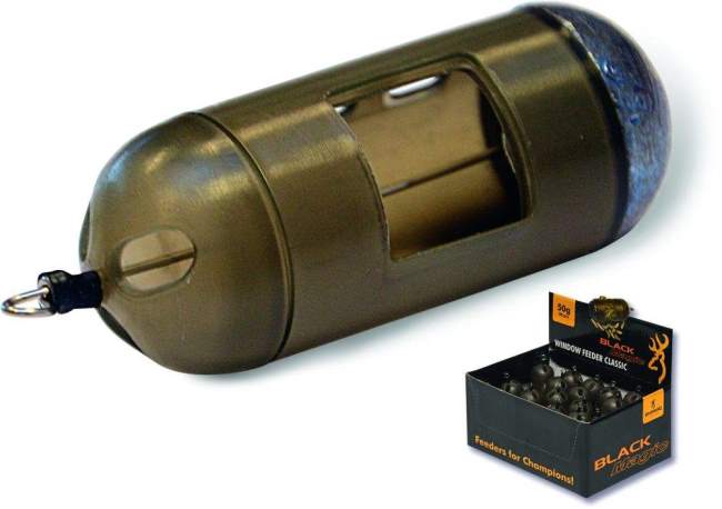 Improved re-make of our classic and patented Window Feeder. Can be used 2 ways - fill with maggots and turn the sleeve to close the window or fill with any particle bait and closing the window with a smear of ground bait for rapid emptying. Casts long and straight due to the end weight design.